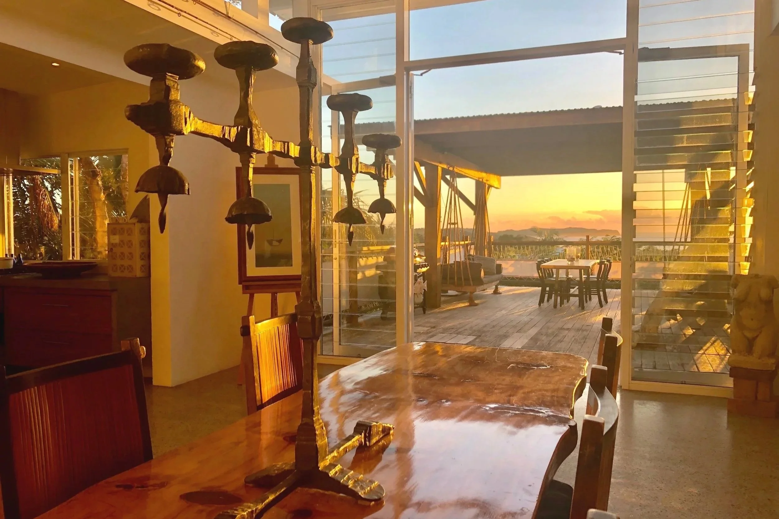 Wine on the balcony as the sky turns apricot
